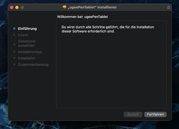 Nachdem der Download abgeschlossen ist, führe die ".dmg"-Datei aus. Befolge die folgenden Schritte, um den Treiber zu installieren.