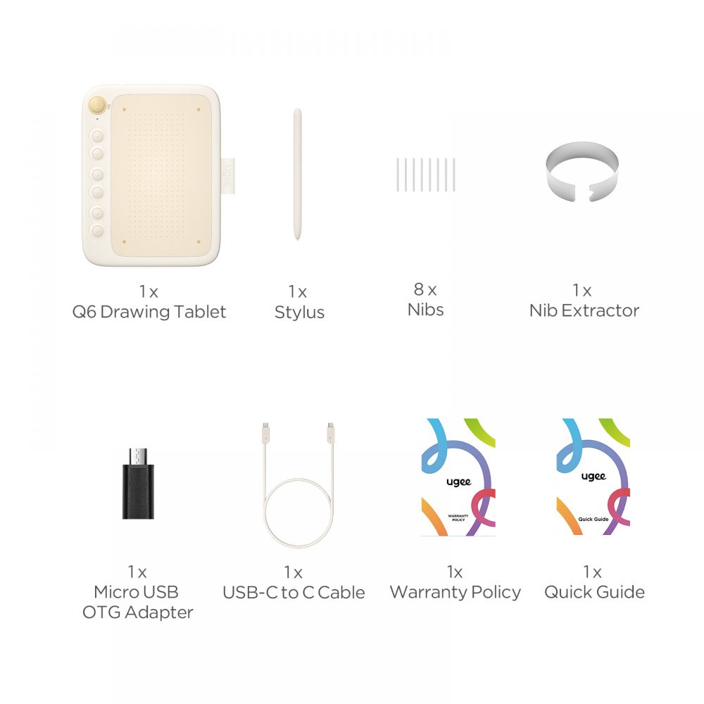 El ugee Q6 viene con un cable tipo C incorporado que presenta un diseño desmontable. Puede desconectar o guardar fácilmente el cable, eliminando la necesidad de cables o adaptadores adicionales.