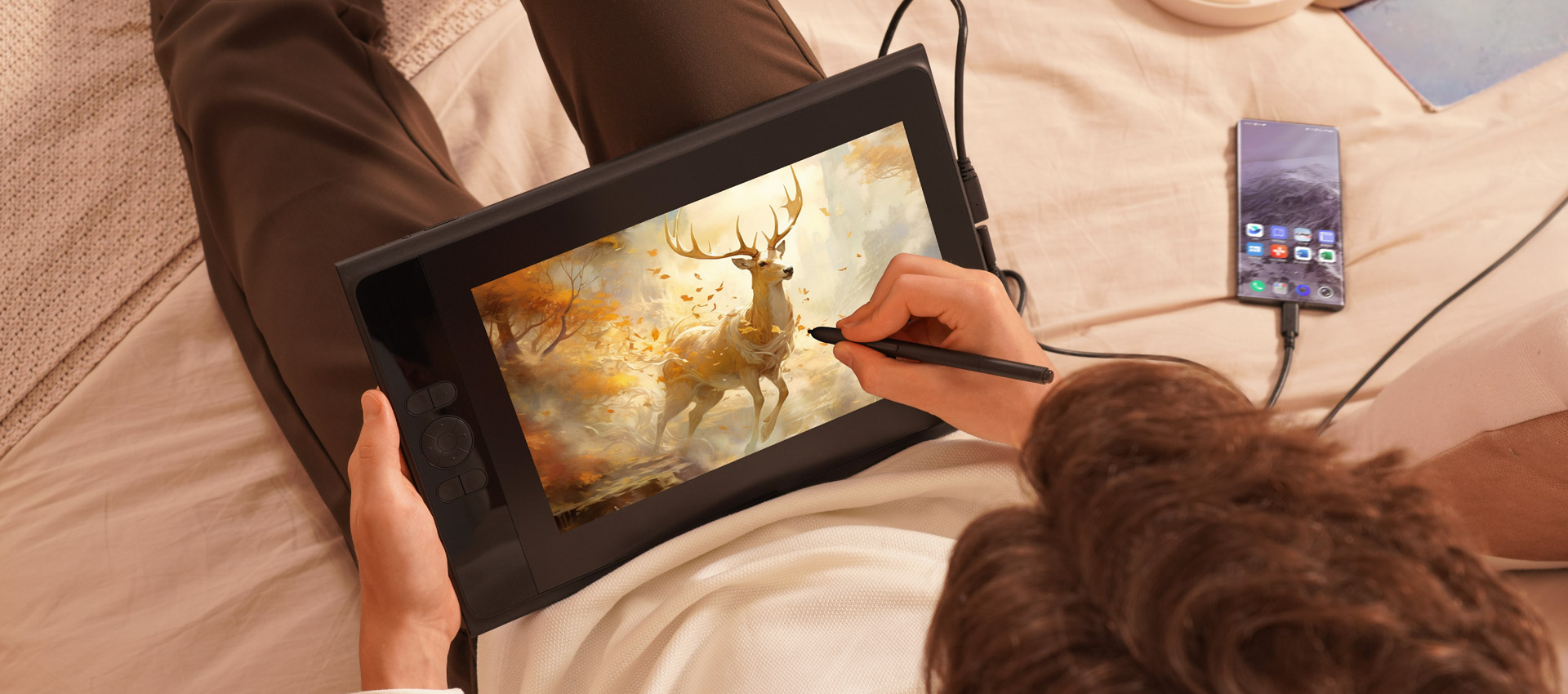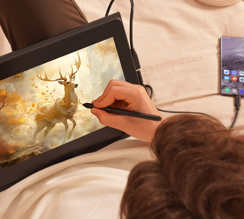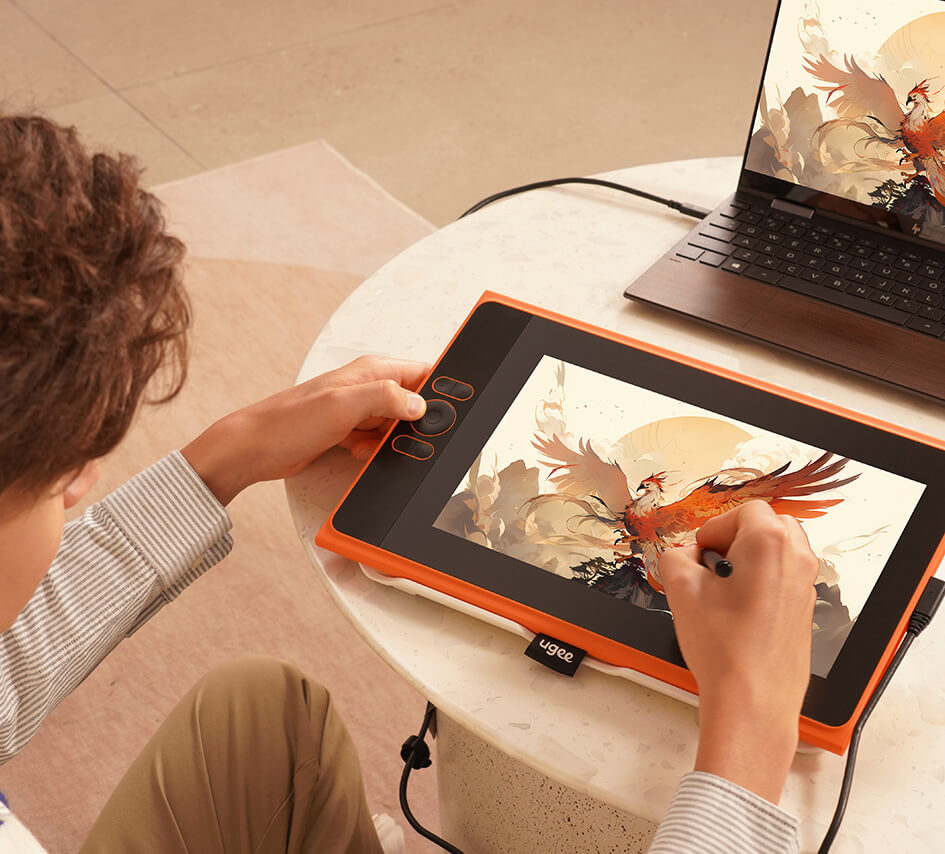 Equipped with a full-laminated screen, the UE12 achieves ultimate precision in every stroke, as the pen tip and cursor align flawlessly without any visual discrepancies. With the FHD (1920*1080) screen, it can also effectively enhance clarity for vivid detail of your drawing.