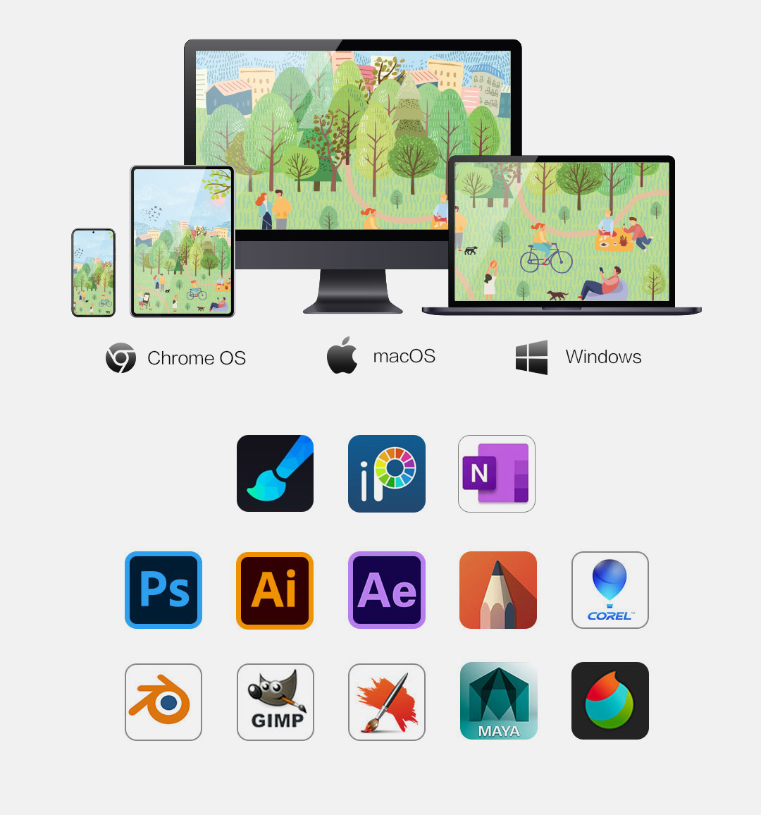 In just a heartbeat, the UE12 can be easily switched to a 'drawing tablet' after long pressing the power key for 3s, making it perfectly compatible with some drawing softwares which would bring better experience with drawing tablet and keyboard. Choose your preferred creative mode and indulge in a pinnacle drawing experience.