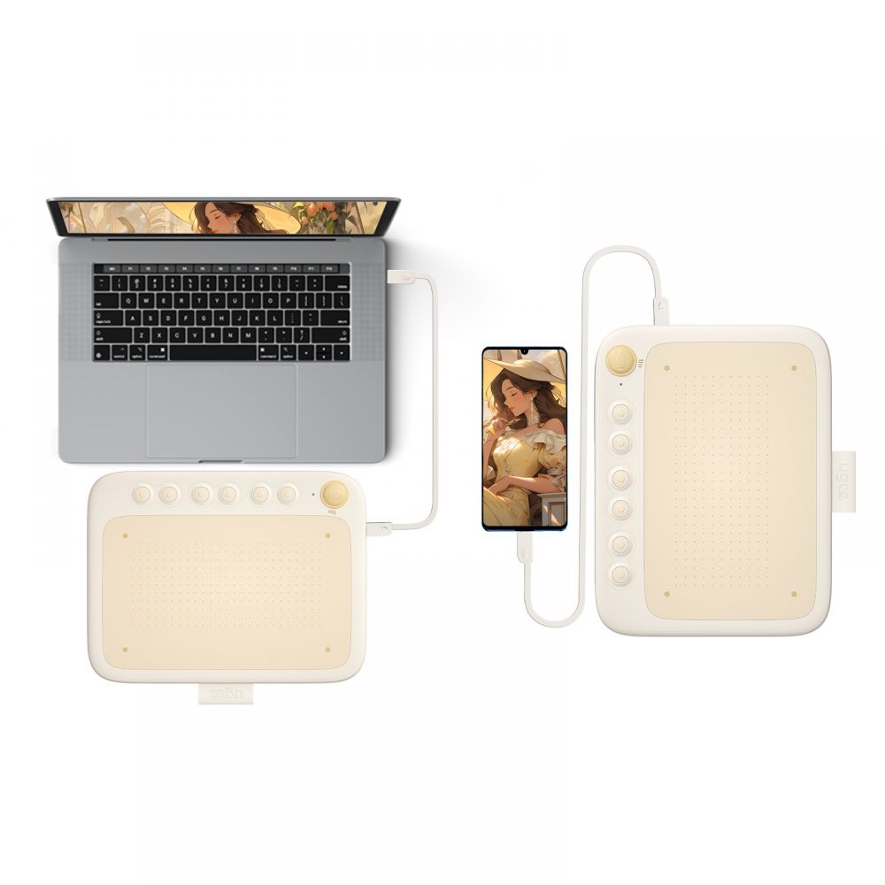 La tablette dispose de six touches de raccourci antibruit regroupées par paires pour faciliter la mémorisation de leurs fonctions. Grâce à la commodité des touches de raccourci, vous pouvez facilement accéder à divers outils de dessin, simplifiant ainsi le processus de fonctionnement.