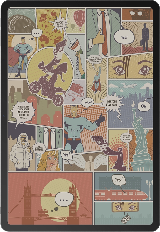 A soft-textured, magazine-like experience—ideal for vibrant, fatigue-free manga and webtoon marathons.