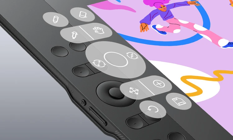 10つの物理的なショートカットキーは描画体験を向上させます。さらに、スクロールホイールは、スイッチボタンを押すことで4つの機能に切替可能で、創造的なアイデアが途切れることなくスムーズに作業ができます。